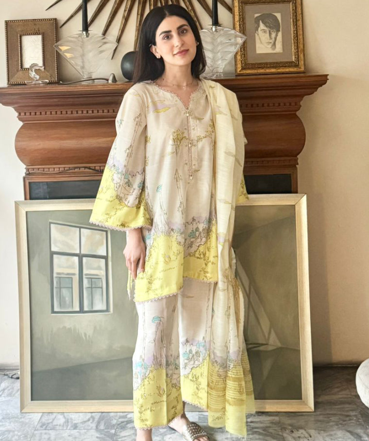 ShirtDigital Printed ShirtChikankari Embroidered Border (Sleeves)Embroidered Hem (Front)Embroidered NecklineDupattaDigital Printed Chiffon DupattaTrouserDyed TrouserDigital Printed Patch (Trouser)Fabric DetailsShirt = Lawn (Printed)Dupatta: Chiffon (Printed)Trouser = Cotton