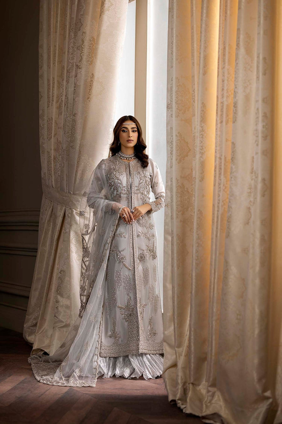 Hand embellished with crystals, nakshi and dabka on tissue fabric with crushed tissue lehenga and net dupata
