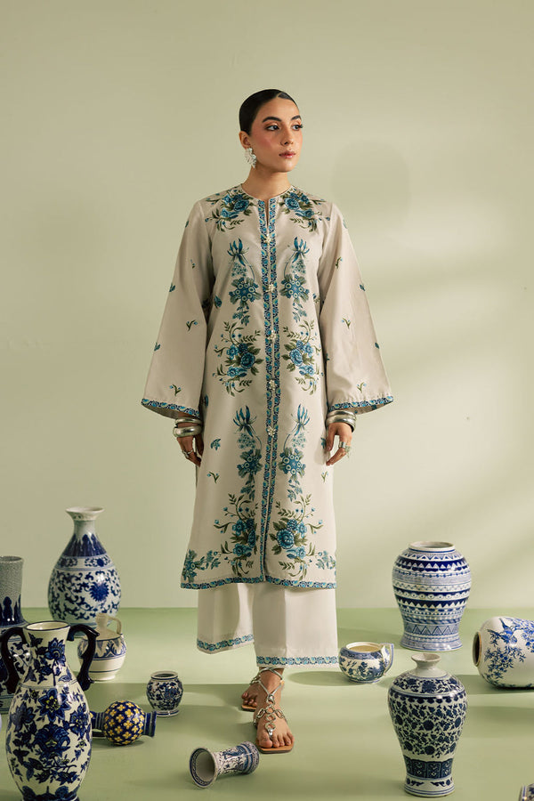 Fabric: Lawn silk Printed shirt with embellished details, paired with straight pants