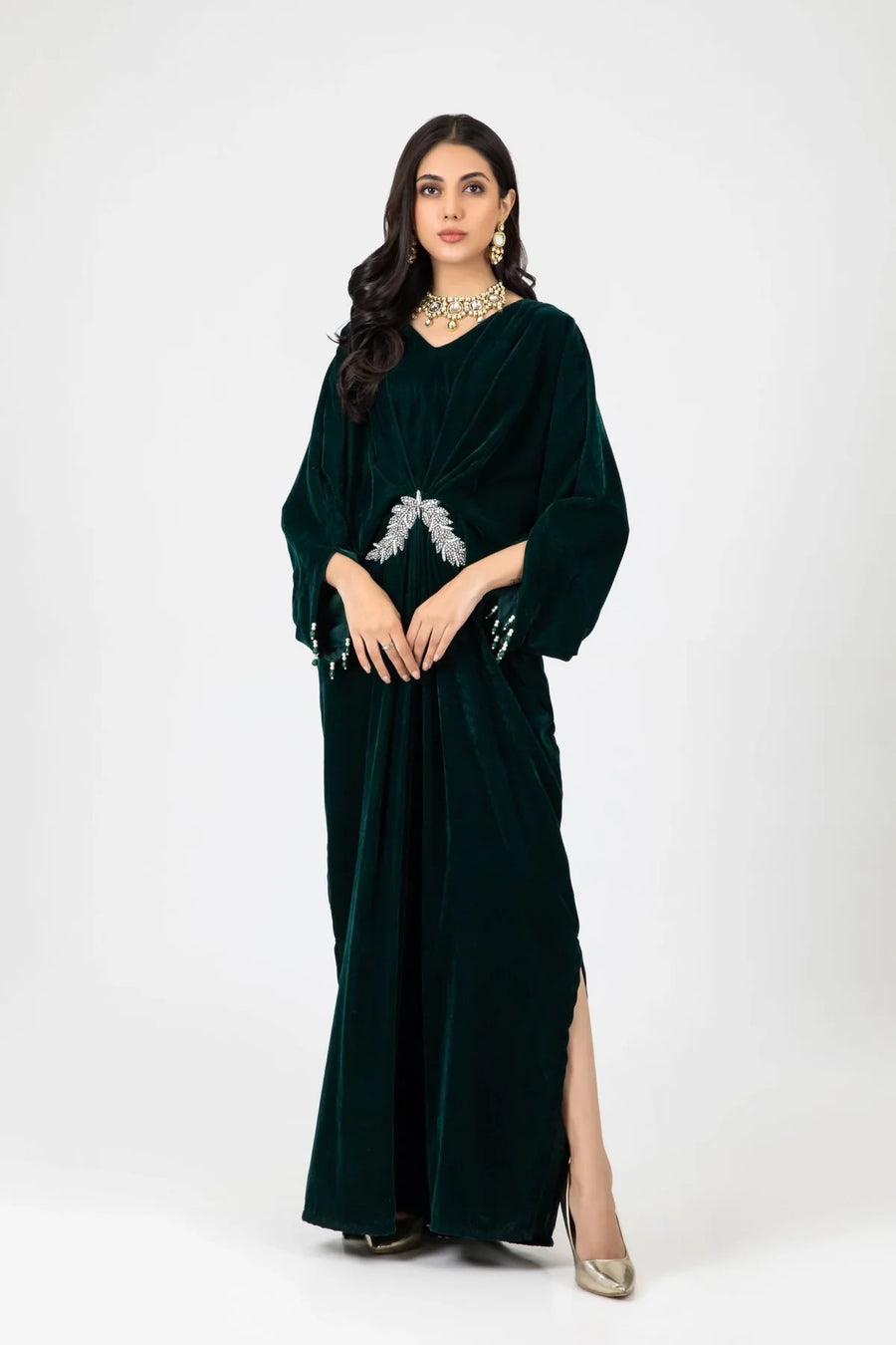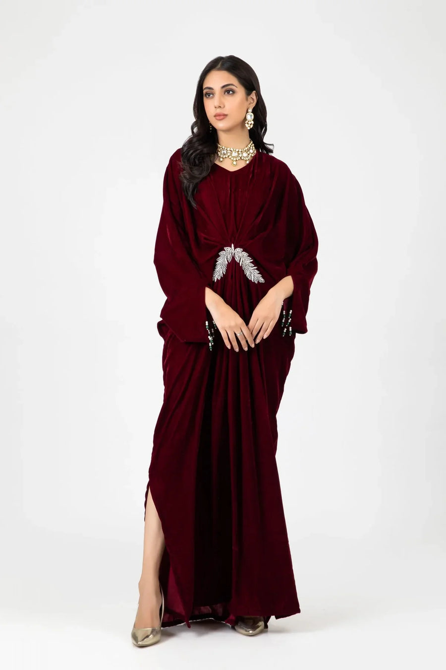 Effortless style. This beautiful velvet kaftan is rendered with delicate sparkly crystals along the waistline front and back. A versatile piece to wear at any event. Material: Velvet Pants &...