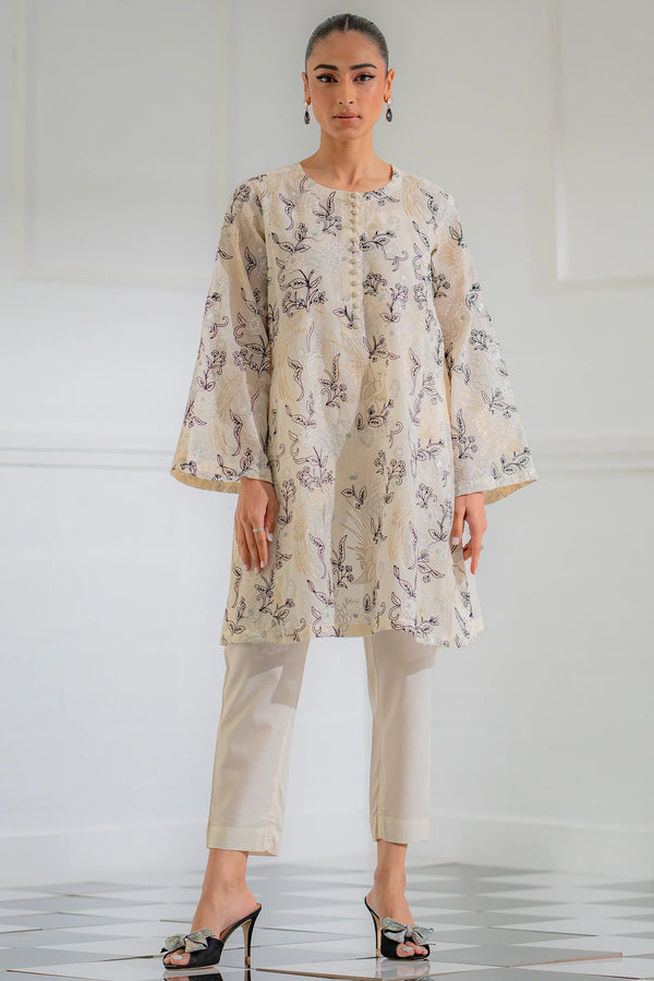 This season, embrace pure elegance with this beautifully embroidered kurta paired with straight pants Fabric : 100% Premium CottonColor : CreamEmbellishment: EmbroideryCut : Straight CutLength : 42 inches