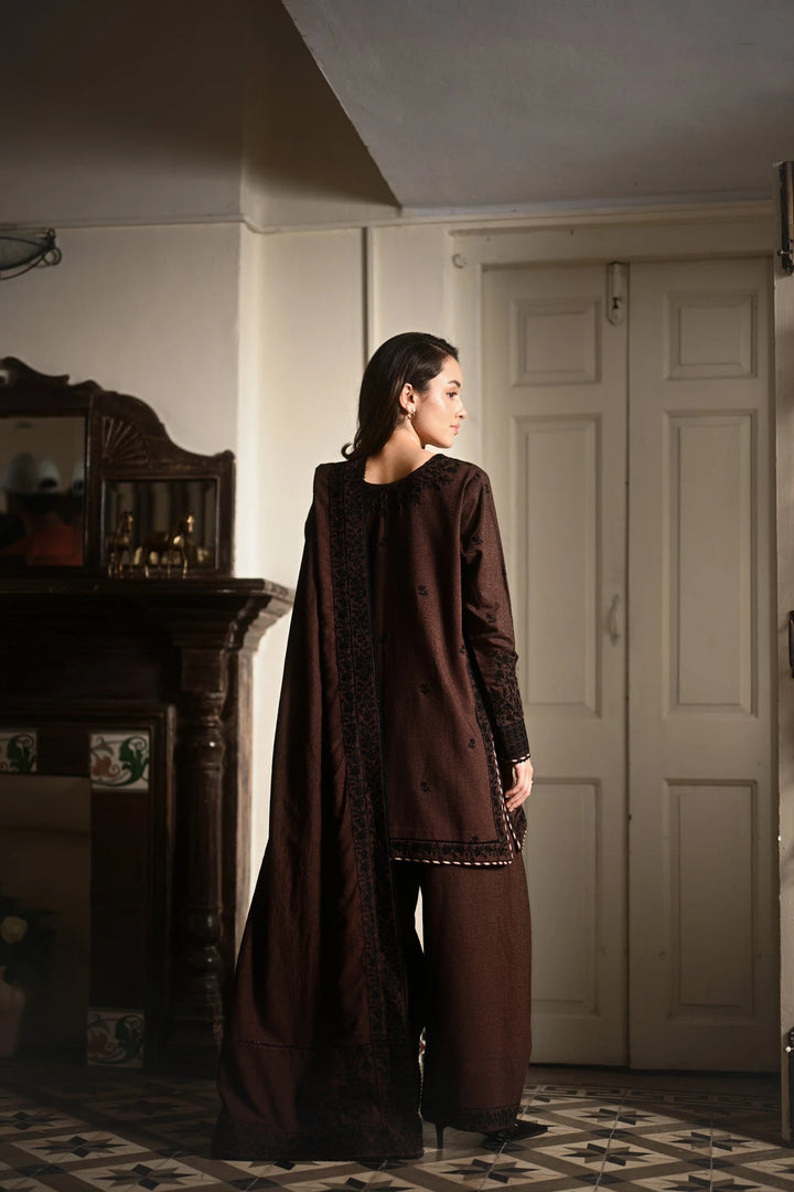 A/W Pret '25 - CHOCOLATE BROWN LUXURY EMBROIDERED KARANDI 3PCS SET (NPA3-25441)