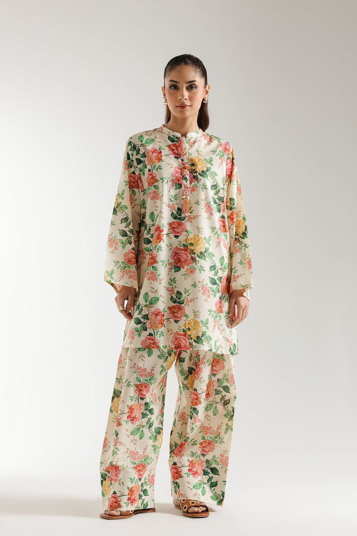 Step up your style game with this one-of-a-kind shirt boasting a bold mix of vibrant colors through floral prints and an eye-catching pale yellow canvas. The dapper printed shalwar is the ultimate match for this effortlessly chic ensemble, a must-have for your summer closet.