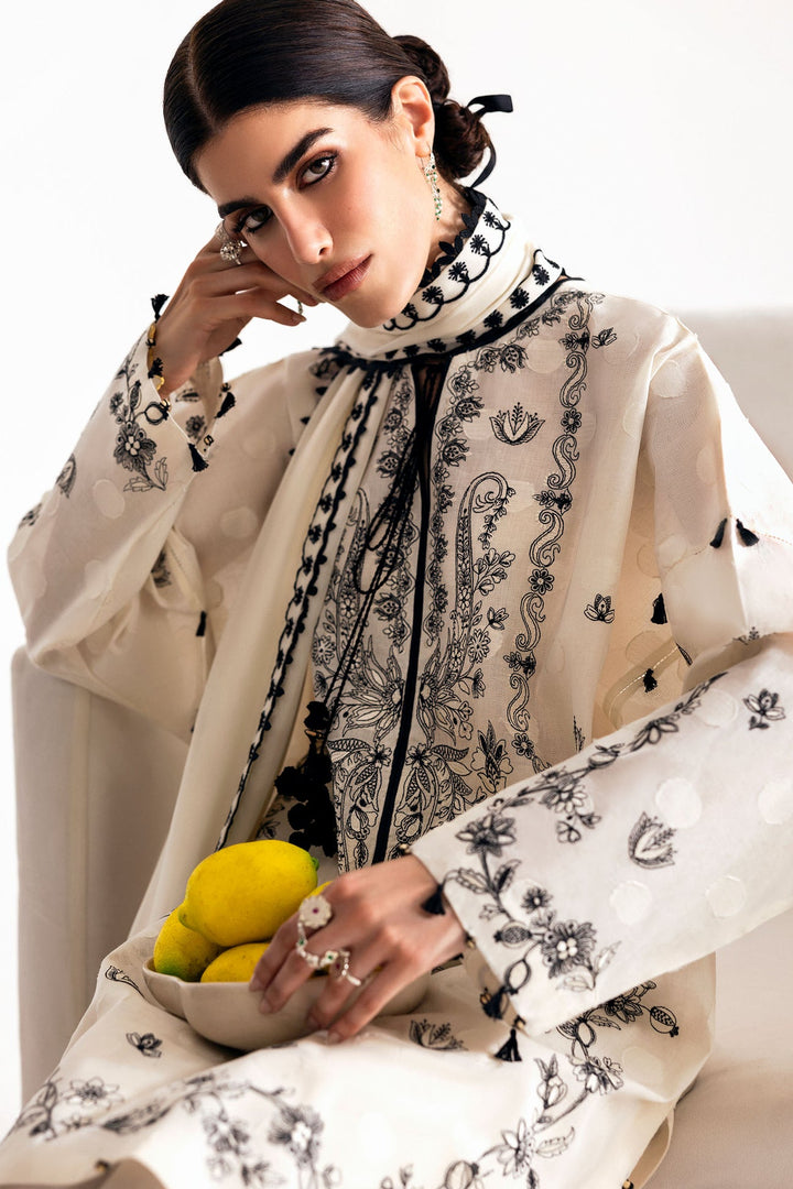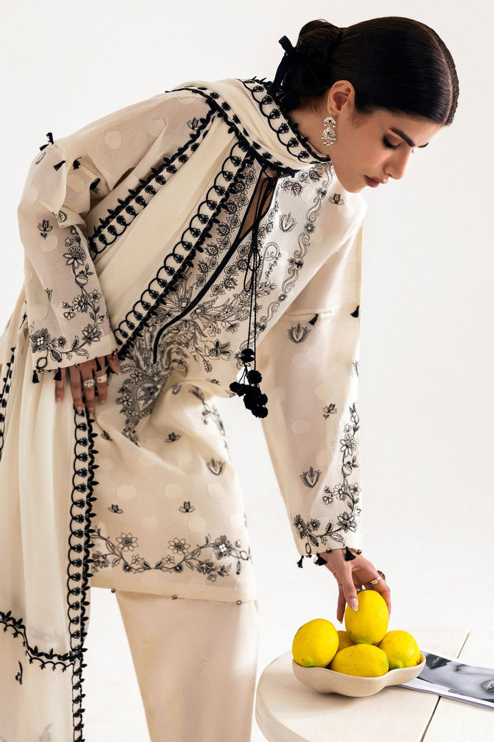 Paired with a tonal chiffon dupatta edged with embroidered borders, lace trims, and detailed pallus, Ayra is light, breathable, and full of ease. Perfect for slow summer brunches and the Zaha girl who loves her style soft but striking.