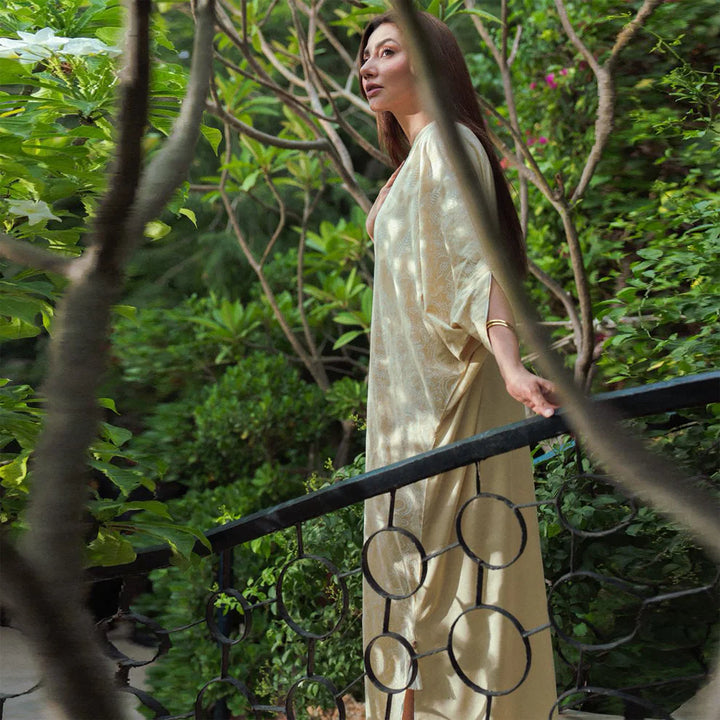 Step into effortless elegance with our Husna kaftan. Featuring a mix of traditional and modern patterns and chatapati finishing, it is a timeless addition to your wardrobe.