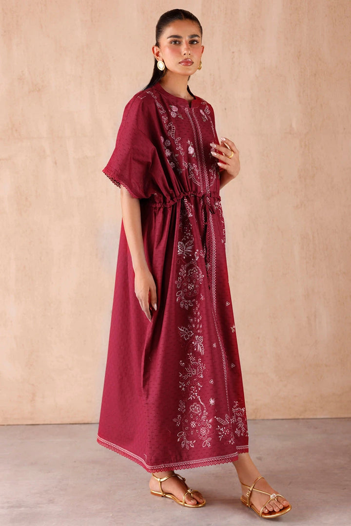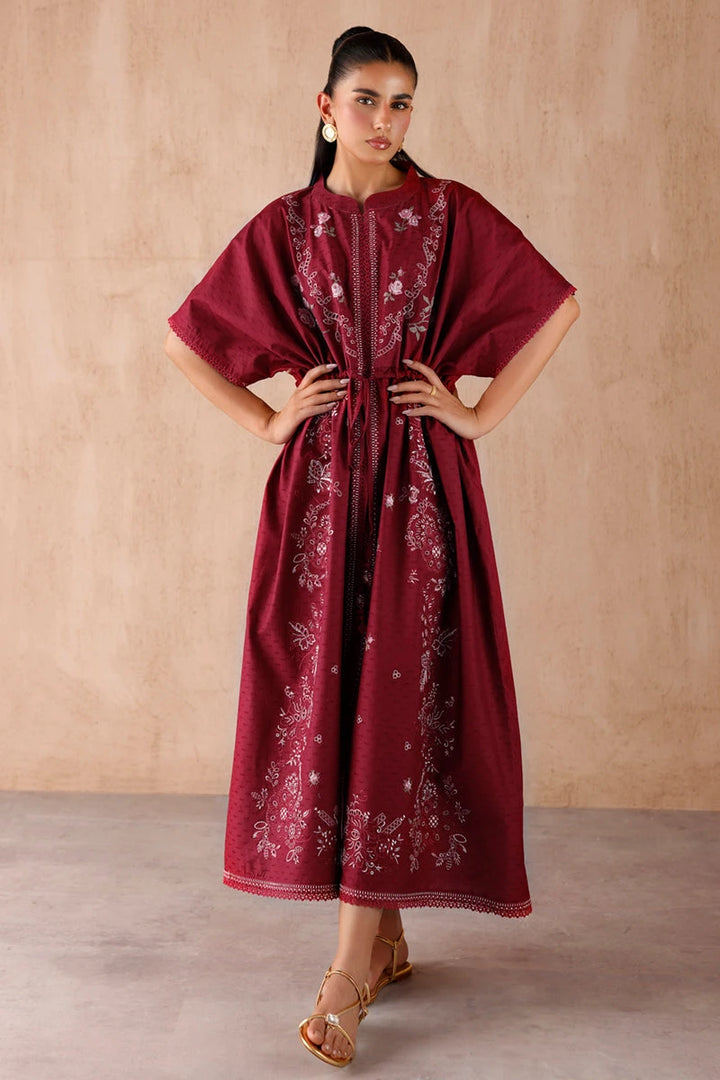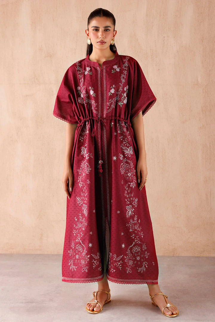 Step into a symphony of elegance with ruby radiance “Aria” a kaftan in jacquard weaved fabric that steals the show. This vibrant crimson red masterpiece is a canvas for exquisite white and silver embroidery, blooming with intricate jacquard weaved silhouette. The artfully cinched waist defines a timeless grace, making every moment an affair to remember.
