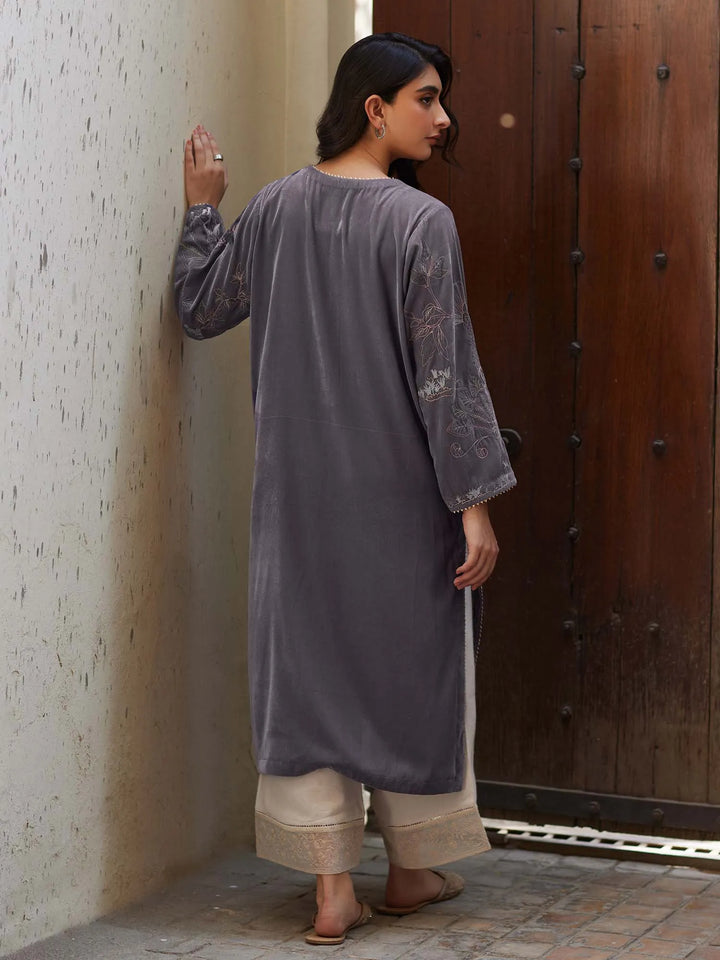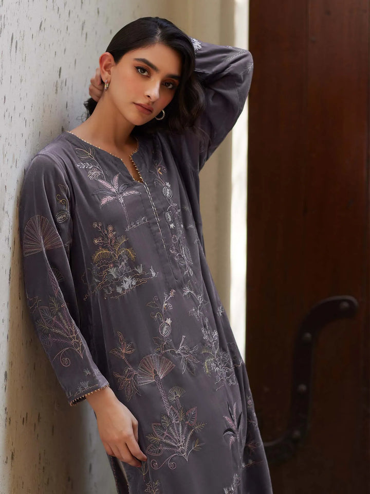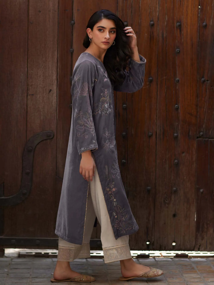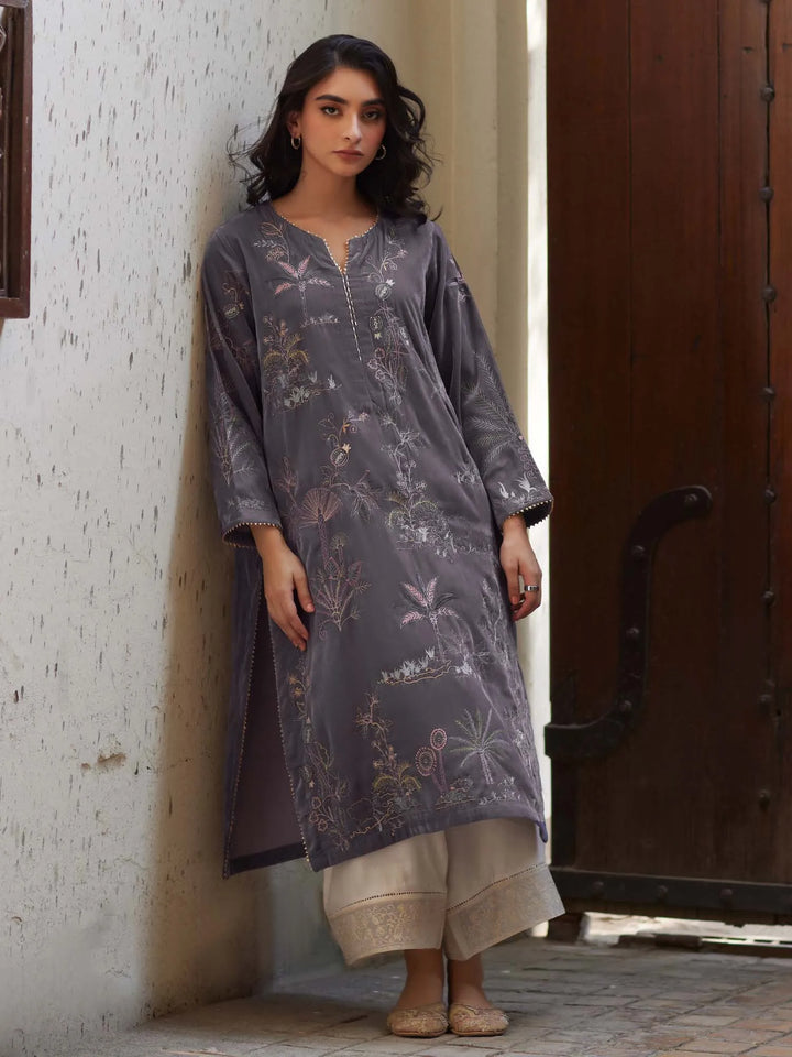 A timeless winter essential — our lilac embroidered kurta showcasing multi resham work with single aari detailing for an effortlessly graceful look.