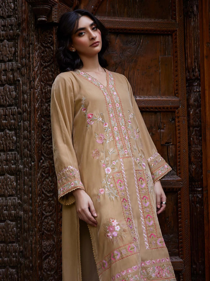 From intimate gatherings to evening affairs — this beige velvet kurta defines winter elegance with multi-resham work and subtle aari accent, for a look that’s effortlessly refined.