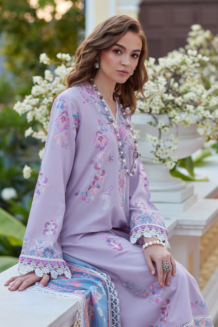 This exquisite lavender-hued shirt is adorned with intricate Suzani embroidery, showcasing rich, detailed craftsmanship. Paired with a sublime Suzani-printed silk dupatta, this ensemble exudes elegance and cultural charm, making it a perfect choice for any sophisticated occasion.
