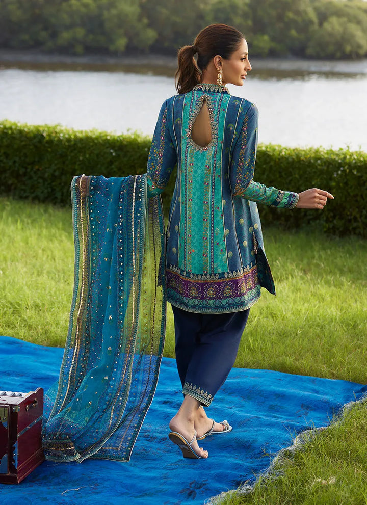 Navy Blue And Teal Navy Blue And Teal Navy Blue And Teal Navy Blue And Teal Fabric: Shirt: Pure Raw Silk - Shalwar: Pure Raw Silk - Dupatta: Organza