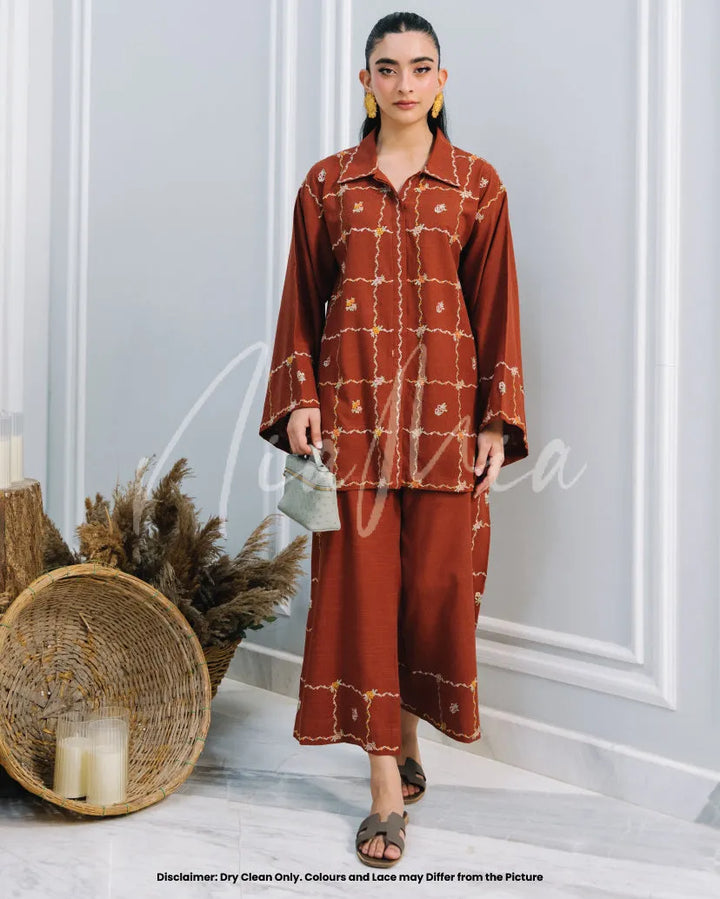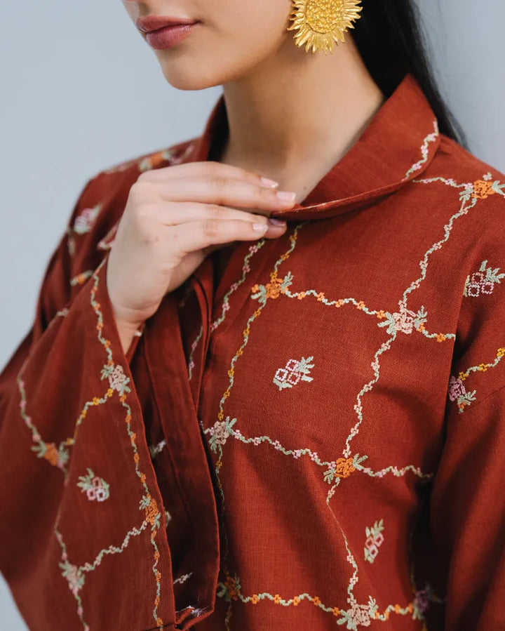 In a rich autumn tone, Cinnamon brings warmth and character to your wardrobe. Made from premium linen and adorned with intricate contrast embroidery, it combines refined craftsmanship with modern ease — an ideal choice for the season’s polished yet relaxed aesthetic.