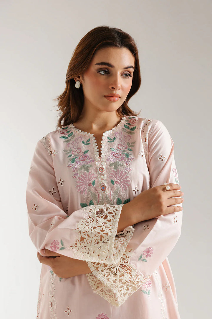 Powder-pink shirt with floral embroidery and schiffli accents