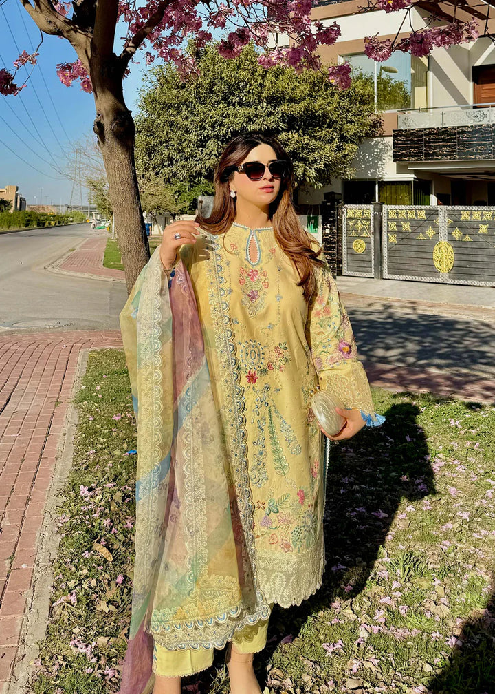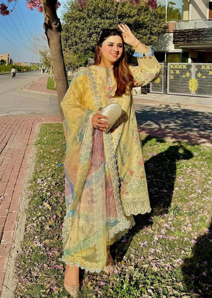 Additional Description: Romancing summer, this beautiful pastel palette based design is a keeper. Like spring in bloom, the densely crafted floral sleeves and an engineered heavily composed front offers the perfect soft look ! Paired with a gorgeous digitally printed organza dupatta with a bed or rose and a contemporary setting for color blocking to lift the overall look. Care Instructions : 1- Do not bleach or use stain removing chemical 2- Dry in shade 3- Iron at moderate temperature 4- dry clean only 5- wash colors and whites seperately