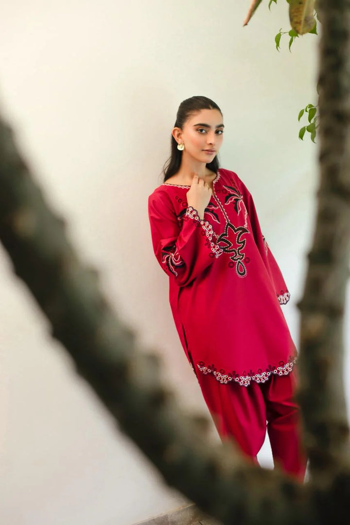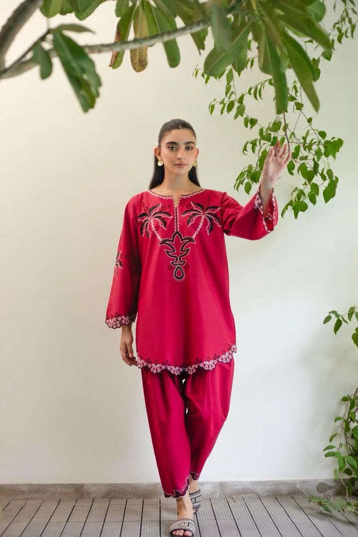 Classy Mix of Red&Maroon top with black and white embroidery spiced with a pinch of blue thread —festive energy redefined in simplicity. Soft pure cotton — embroidered to perfection.