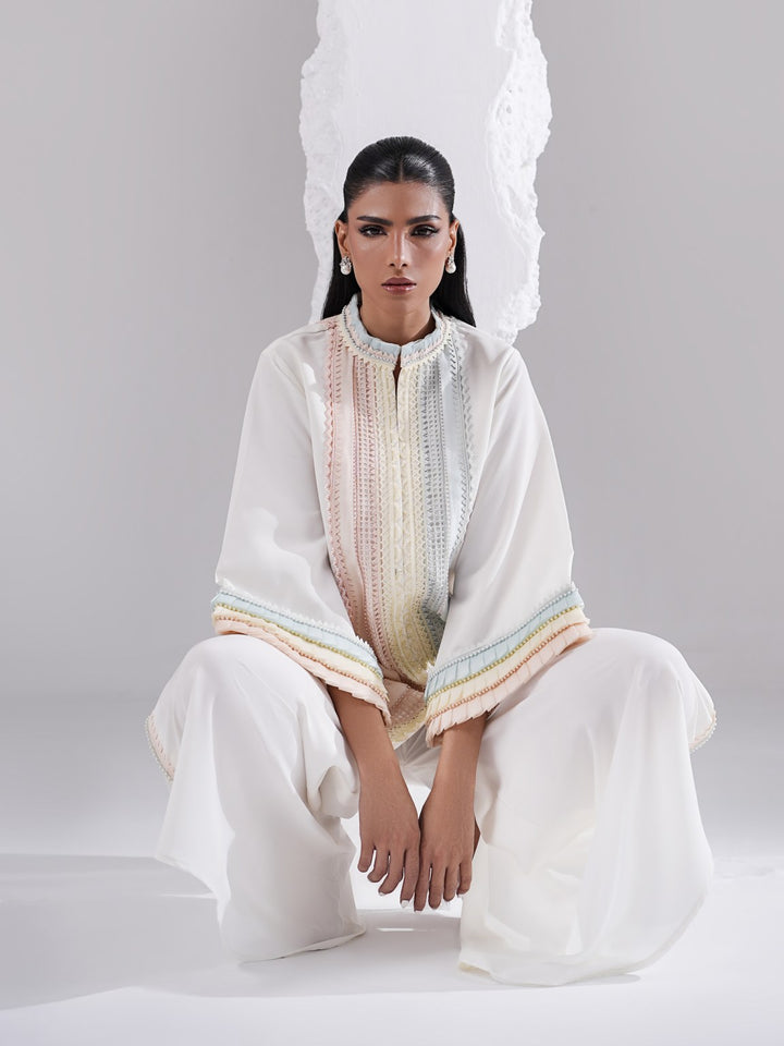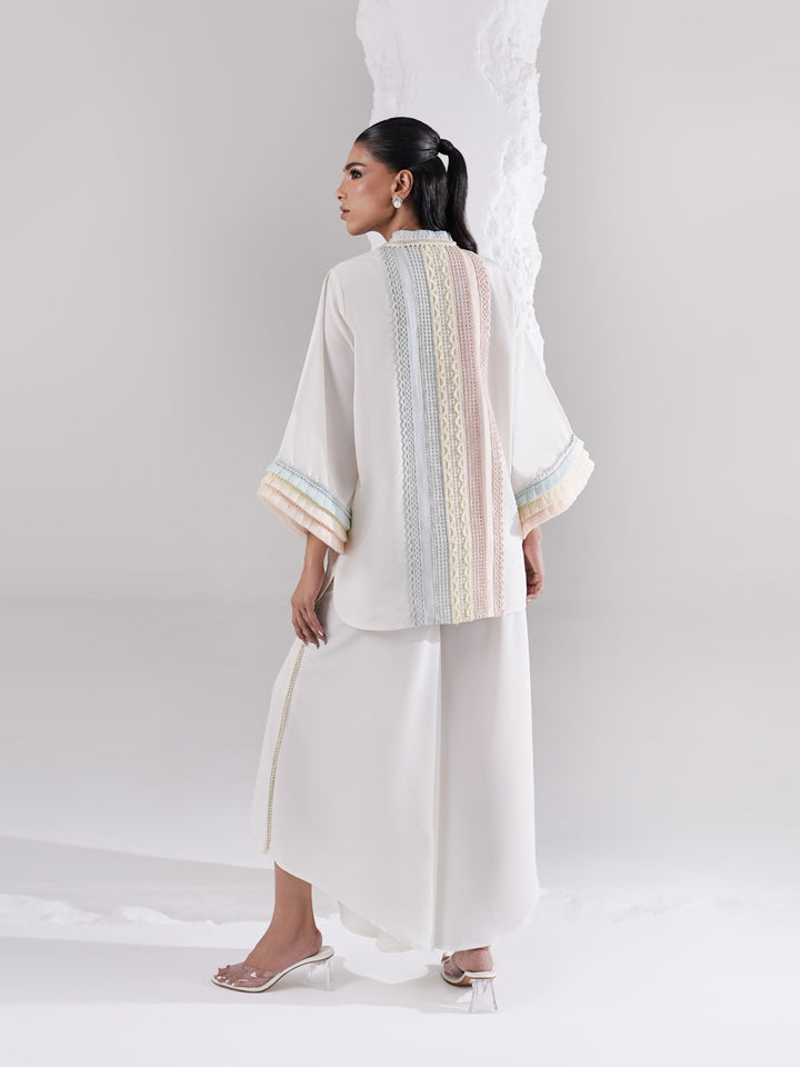 - Shirt has elaborate laces in pastel colors paired with pure organza trims