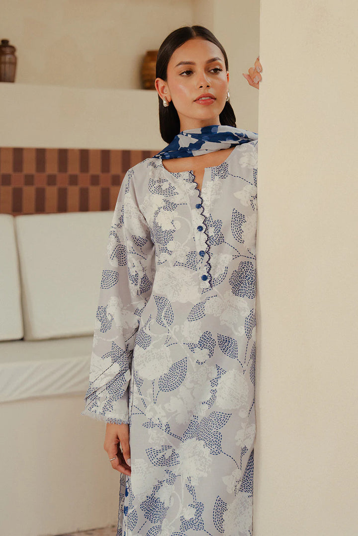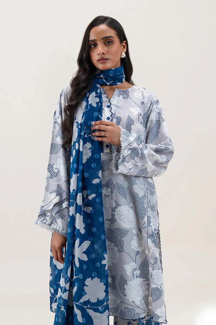 Unstitched Summer interlude'25 - 3 PIECE PRINTED BLENDED LAWN SUIT-PEARL BLUE